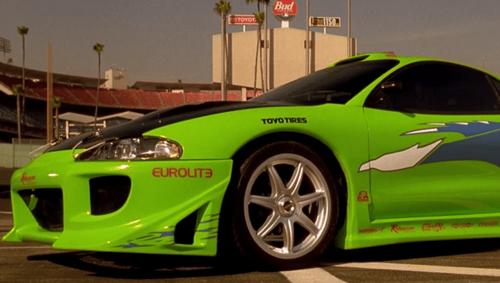 The 1995 Mitsubishi Eclipse is a customized sports car manufactured by Diamond-Star Motors and Mitsubishi Motors. The Eclipse is driven by Brian O'Conner and plays a minor role in The Fast and the Furious.